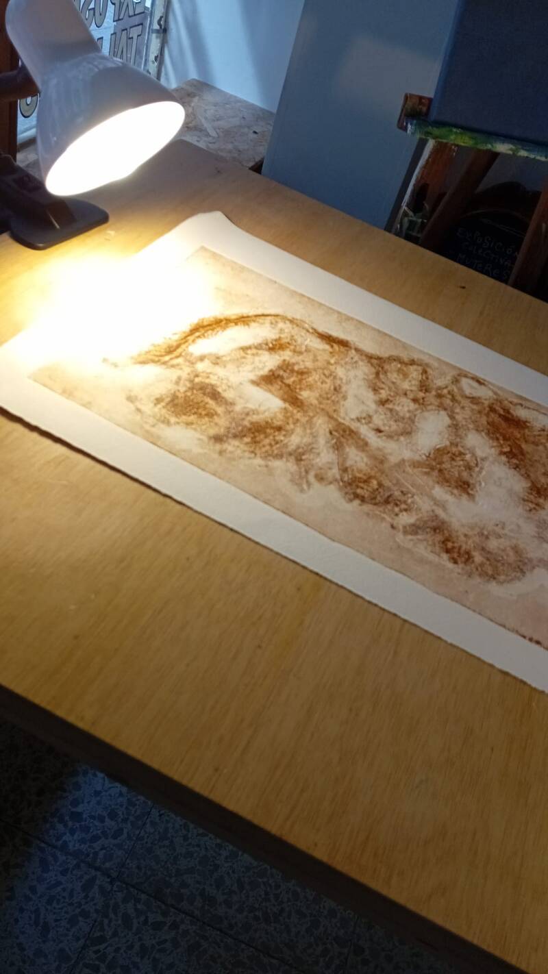 Mes principales techniques utilisées sont la gravure, le collage, le dessin, la peinture et les compositions numériques qui dansent généralement ensemble dans ma chorale chromatique.